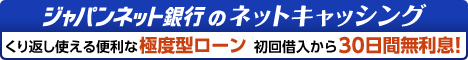 | 申込条件 | ジャパンネット銀行口座をお持ちの方のみネットキャッシングお申込み可能。 お持ちでない方はネットキャッシングと同時に口座開設も可能です。 |